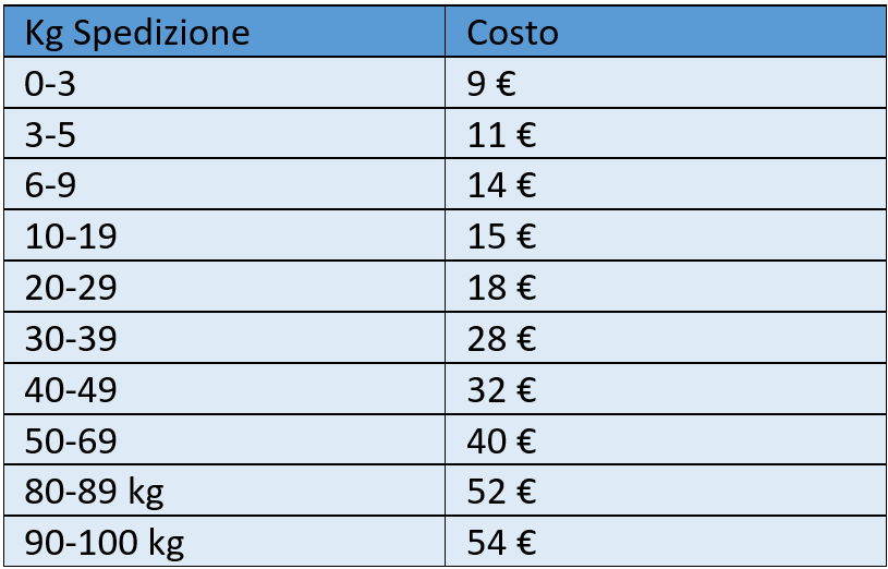 Per avere il migliore rapporto qualità prezzo esegui un ordine di almeno 18kg.